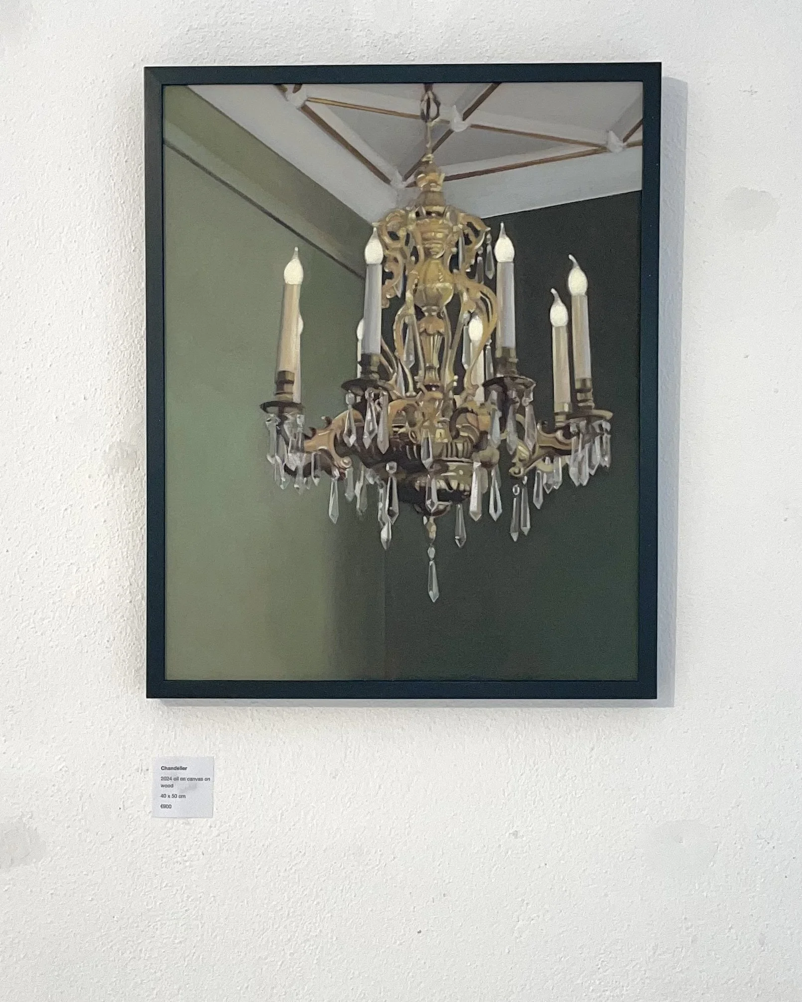 Chandelier 2024 oil on canvas on wood framed 40 x 50 cm